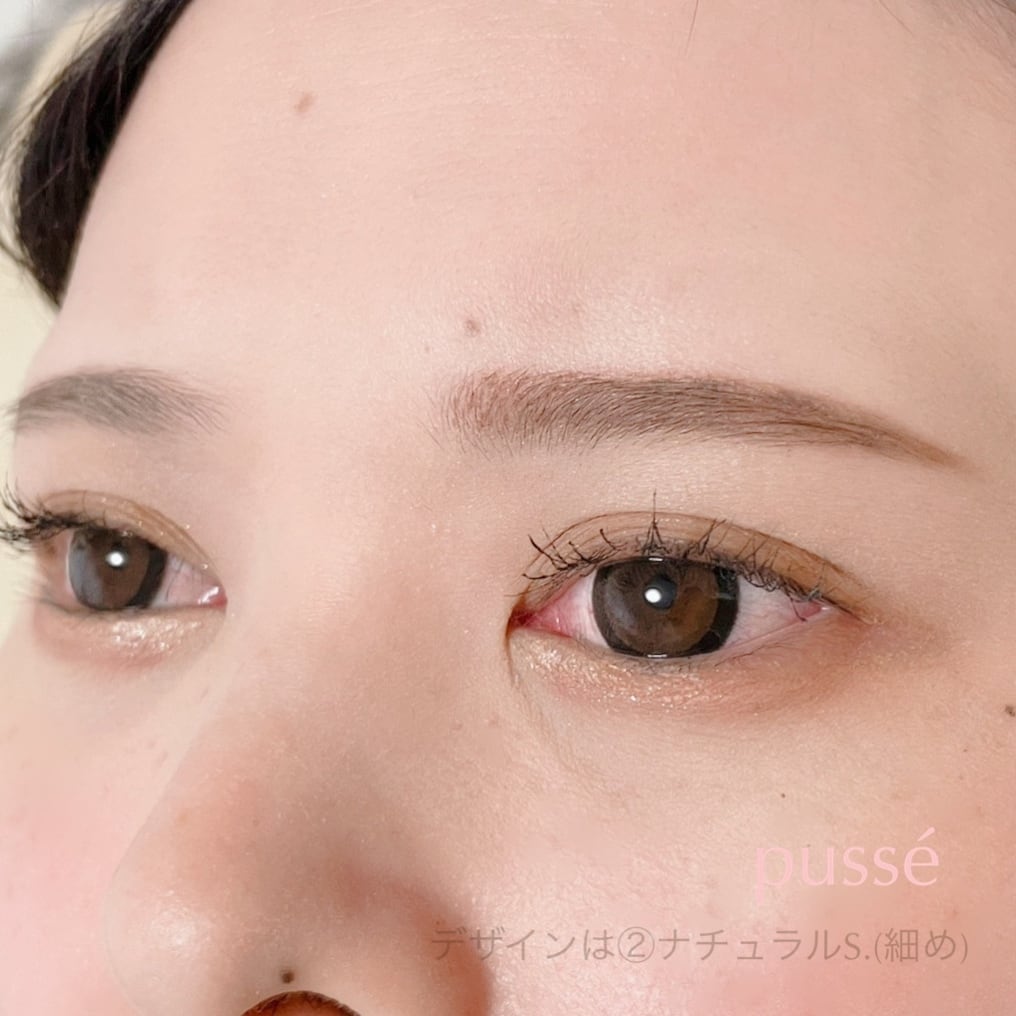 ナチュラル S.(細め)は、N.(普通)より少し細めのデザインです。眉の太さはお好みもあるかと思いますが、あまり眉を主張させたくない方、細めの眉が好き、落ち着く方、目を印象的にみせたい、キレイめな印象にしたい方におすすめです♪